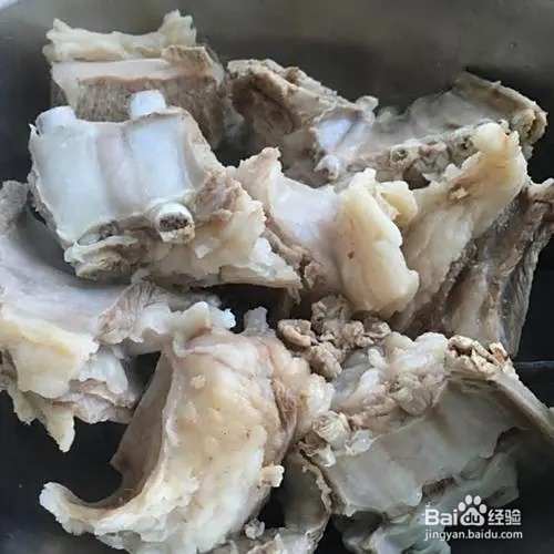 锅内放入羊排、葱段姜片和料酒,加入适量水大火烧开,放入萝卜焖40分钟。