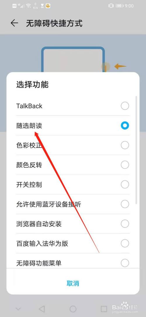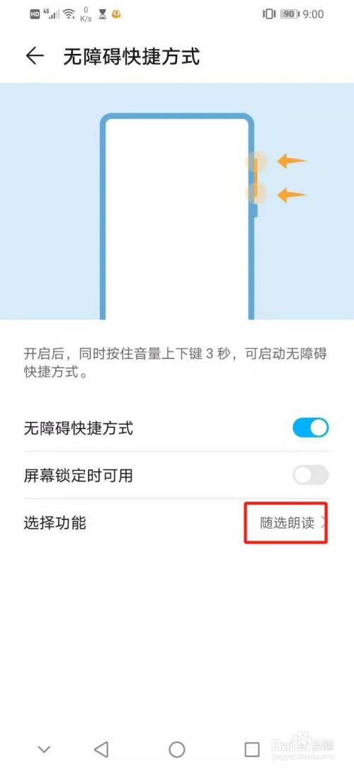 成功设置无障碍快捷方式为随选朗读