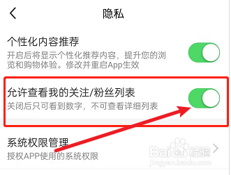 然后我们关闭关注列表开关即可完成任务。