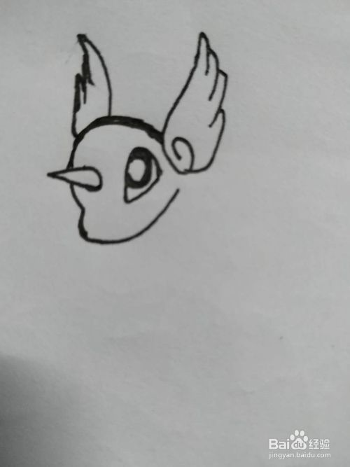 继续画上眼睛,哈克龙的眼睛比较大,部分涂黑,在头顶还有2个标志角;