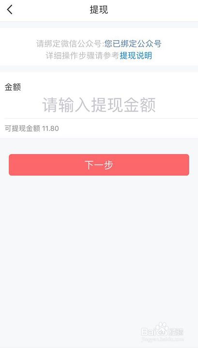 点击提现后,在点击提现说明,按步骤关注了芝麻宝宝官方服务号进行绑定后,输入金额,进行提现,提现金额由服务号发送到微信上
