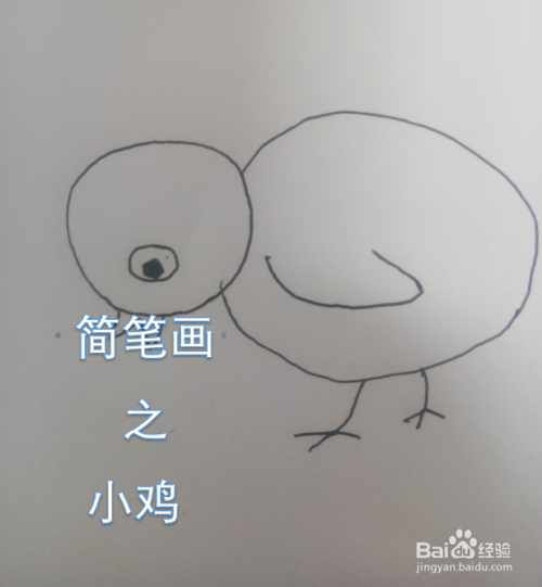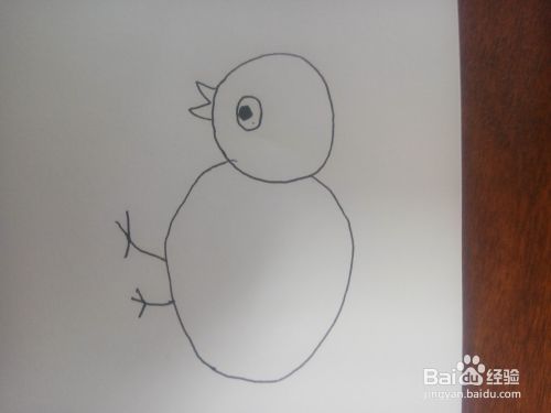 然后在小鸡的身体下方绘制两条腿,这里只需要简单的几笔表示即可,和小鸟的腿画法一样。