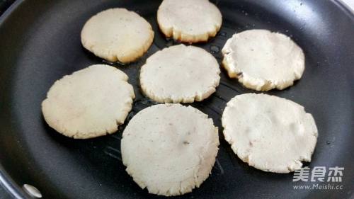 锅中放少许油,用双手掌按扁放入锅中。