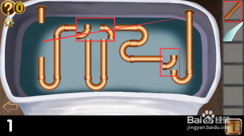 然后我们点击抽水马桶,这时会出现放大了的抽水马桶画面,点击抽水马桶的按键打开盖子,接着我们把刚才获得的管子放入里面,再接好里面的管子,这样我们就能获得抽水马桶里的钥匙了。