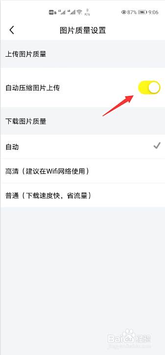 将“自动压缩图片上传”右侧的复选框取消勾选即可。