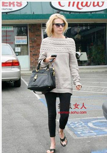 1粉红色的超大领过臀毛衣甜美又舒适。随意挽起的袖管露出淡淡的粉色也格外有味道,搭配深蓝色喇叭牛仔裤和匡威鞋,穿除了冬季的青春活力。