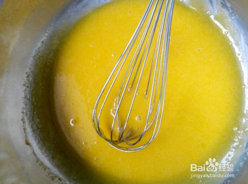 筛入面粉,打匀。蛋黄液就做好了。