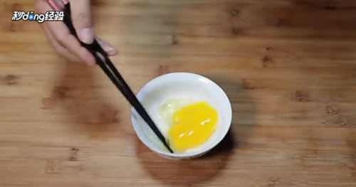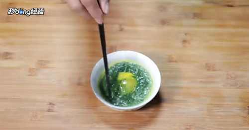 把菠菜泥倒入打散的鸡蛋中,搅拌均匀。