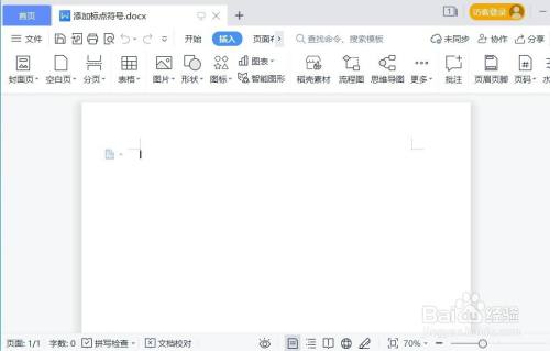 首先,在电脑中打开一个空白文档,点击“插入”。
