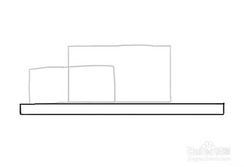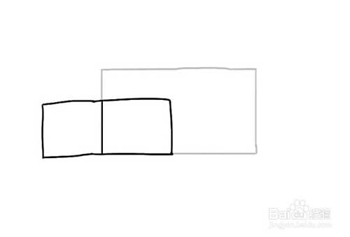 画一个小长方形当车盖。这应该和之前的大长方形交叉并分成2部分; 右边部分一定要在大长方形内。