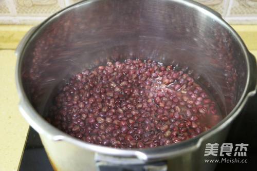 3泡了一晚的红豆洗净,放入高压锅中,加入适量清水(不要太多,以免煮成红豆汤)