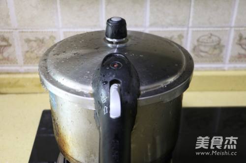 4盖好锅盖,大火煮开,高压锅上汽后,继续煮10分钟关火,焖至高压锅汽全部放完