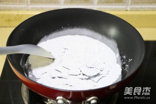 6炒至糯米粉微微变黄,即为熟的糯米粉,盛出备用