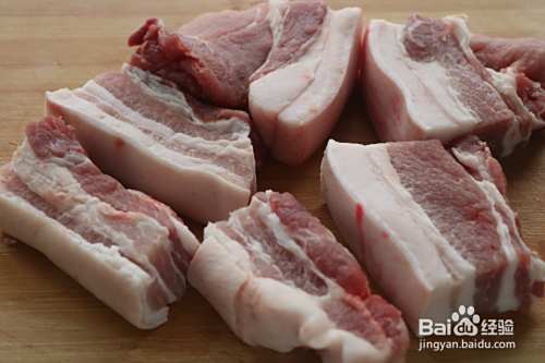 1、准备适量五花肉,然后切成大约10厘米左右的小段。最好用块状的五花肉,这样好切一点;