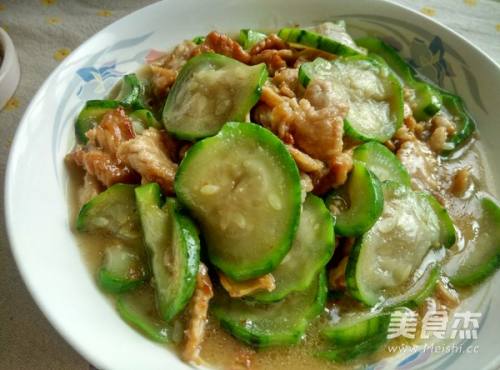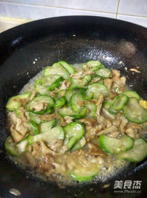 7翻炒,丝瓜片会不断出水,炒三分钟,焖五分钟,调为另外1.5克盐,放入鸡精,炒匀即可。