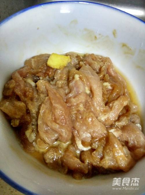 2用姜片,生抽,盐1.5克,水淀粉腌15分钟