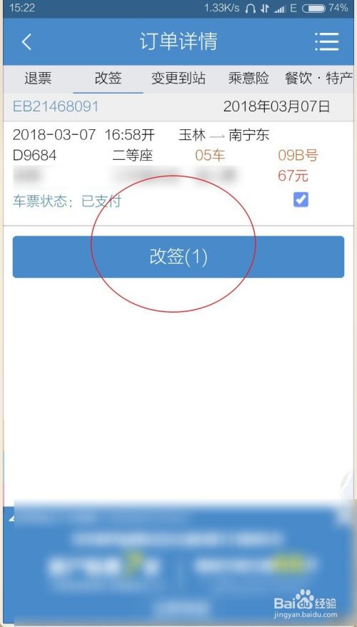 点击一下这个订单,然后选择顶部的改签。或者是直接点击改签。
