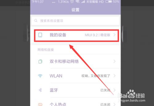 下载好后将系统保存到手机中,然后打开手机的设置界面,点击我的设备。