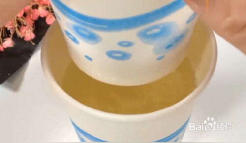 然后再取一个水杯重叠上去,之后倒上茶叶,倒入开水