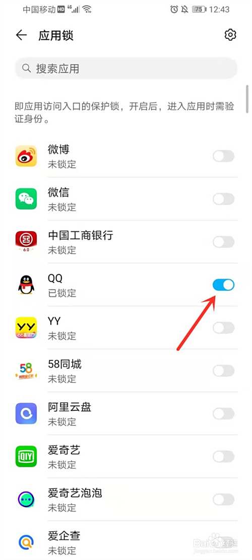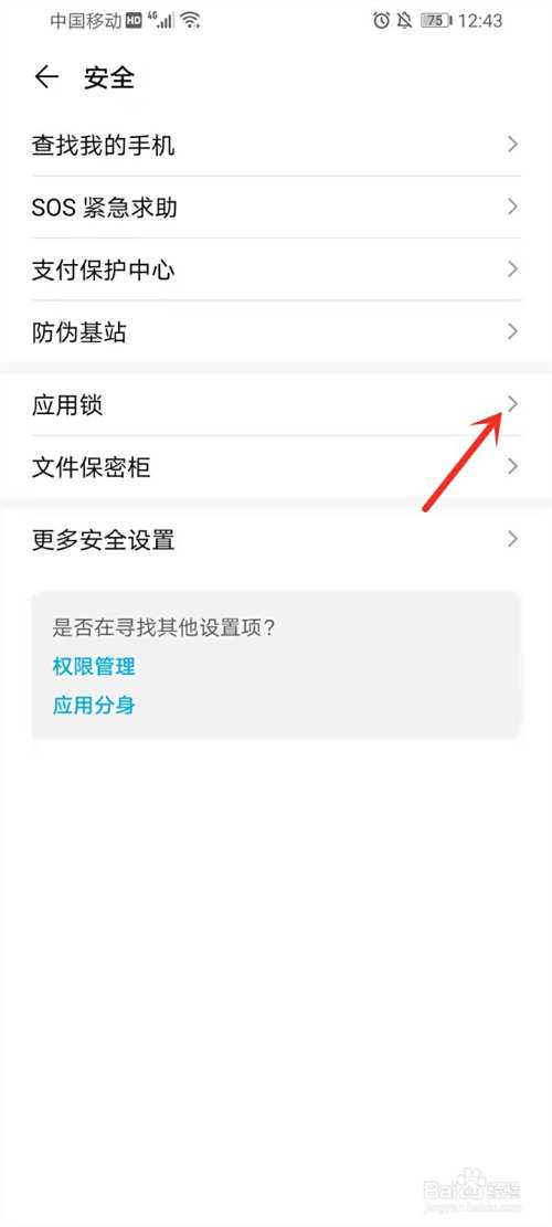 进入手机设置界面,打开安全设置,进入应用锁设置,设置指纹访问应用锁,选择要设置的软件,打开应用锁开关即可。