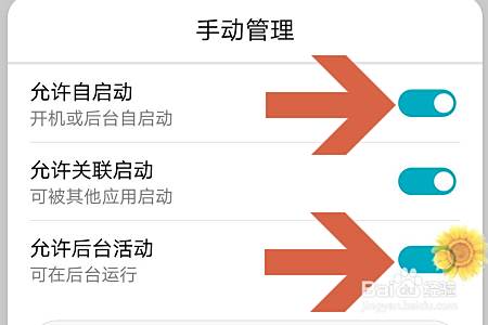 所以我们需要将开关关闭,然后在应用下方弹出的窗口里分别将“允许自启动”和“允许后台运行”全部打开即可,如图所示......