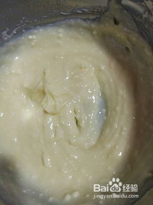 分三次加入鸡蛋液,打至颜色发白,体积膨大!