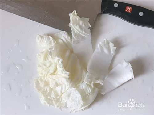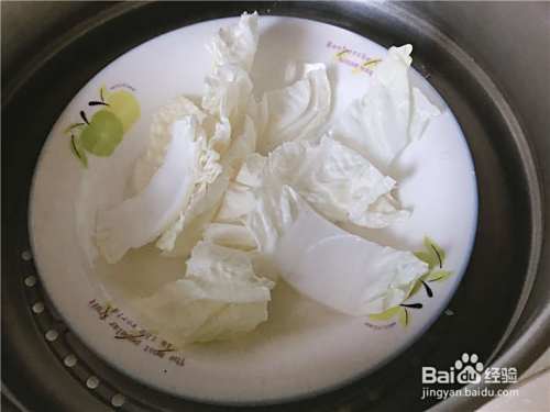 4. 只取白菜叶子放入搅拌机内搅拌成泥如果打不起来加些温水。