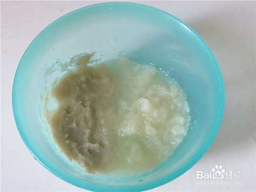 5. 将白菜泥加入冲好的米粉里 搅拌均匀即可。
