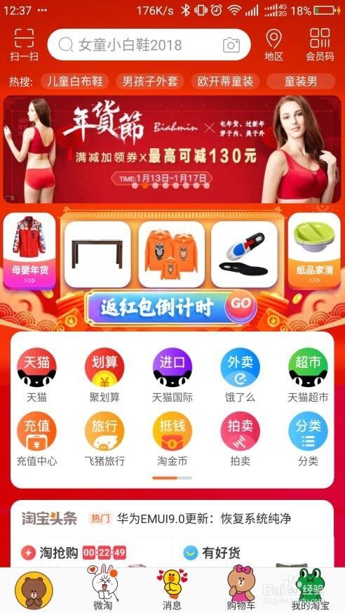 首先,在手机上找到手机淘宝app,点击打开,在界面上往上滑动找寻商品。
