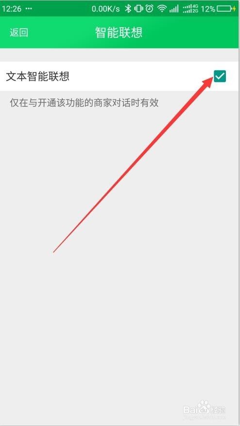 进入智能联想界面,在文本智能联想的右侧,点击方框打上勾开启功能。