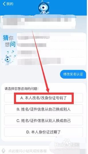 在出现的菜单中选择“本人改名/改身份证号码了”选项