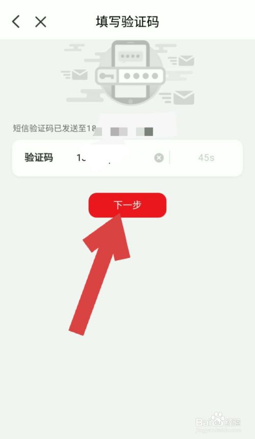 进入手机号验证页面,系统会给我们输入的手机号发送一个验证码,把手机收到的验证码输入验证码栏内,后点击“下一步”。