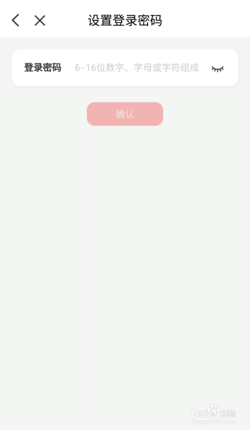 手机号验证成功后,进入设置登录密码页面,我们需要在登录密码栏内输入一个密码,在以后登录账号时使用。