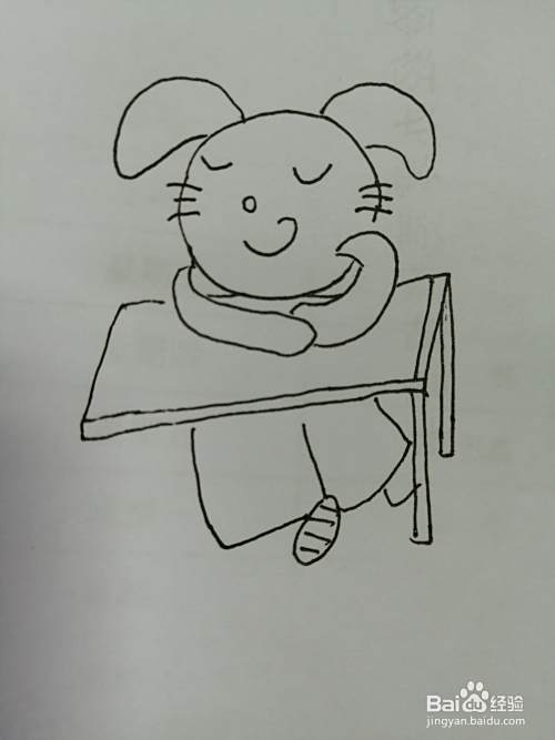 第七步,最后把书桌下面的四条腿画完整。简笔画可爱的睡着的小兔子就画好了。