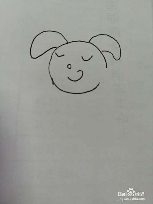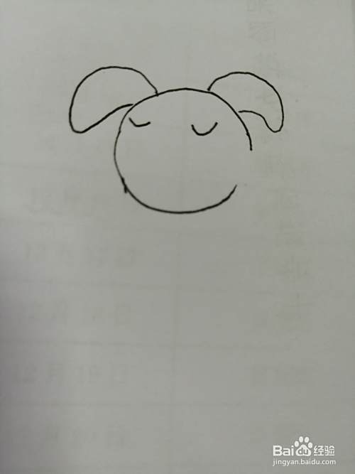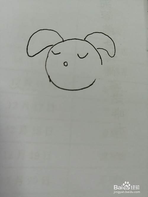 第二步,接着在可爱的小兔子的头部里面画出两条向下的眼睛和小鼻子,小兔子睡着了。