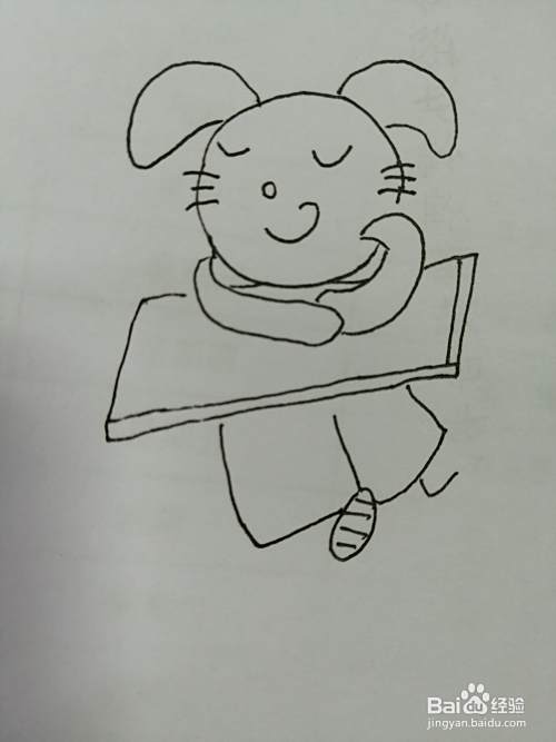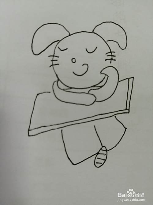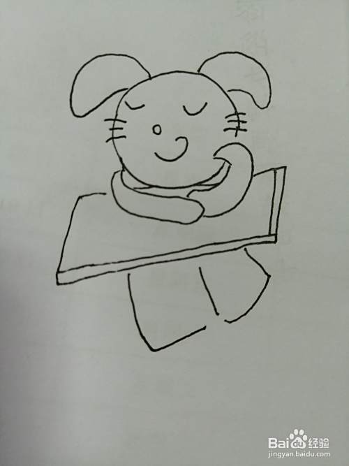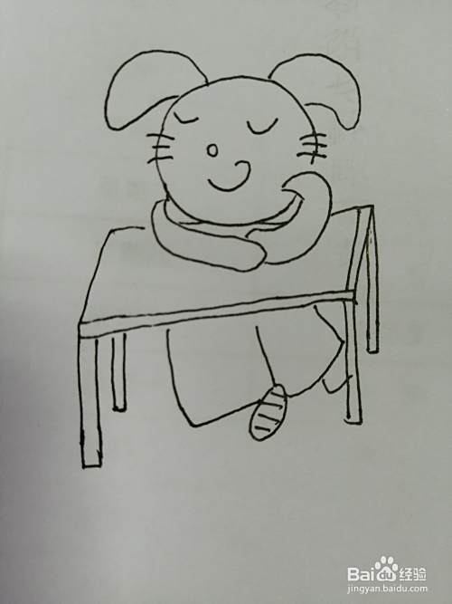 第五步,然后在两只手臂的下面画出一个矩形的书桌。