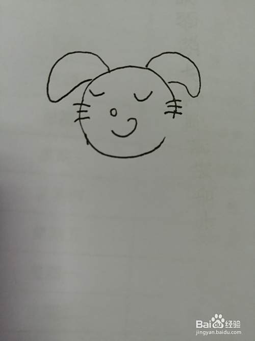 第三步,接着把可爱的睡着的小兔子的两边的胡须和嘴巴画出来。