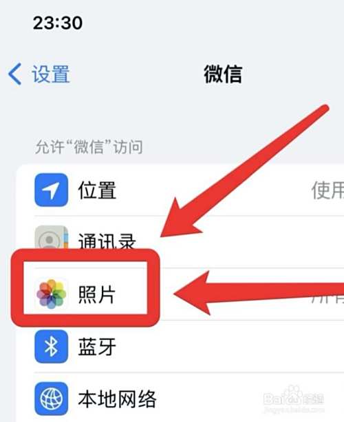在iphone设置中,打开要设置照片权限的应用页。