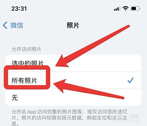 在照片设置中,勾选“所有照片”选项即可。