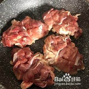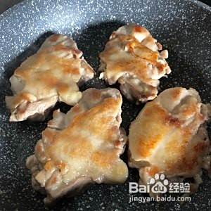 煎到如图金黄即翻面,腿肉那面朝下也煎至金黄。