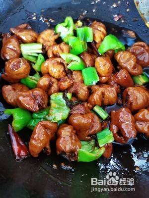 慢炖30分钟后,倒入青椒,开大火翻炒收汁。