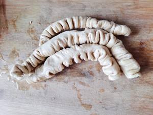 准备好大肠食材 买来生的猪大肠,第一步用醋、盐反复搓洗,第二步放入加姜片、花椒的水中煮开捞出沥干备用。 (大家也可以买菜场处理好的大肠直接回家红烧,但实践证明自己处理的生大肠更好吃,以后有机会上一个处理生大肠的详细教程)