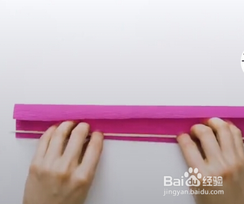 备用一支竹签,要比皱纹纸的长度长一点,然后把竹签放在皱纹纸底部,将竹签卷入纸中。