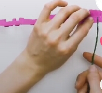 用剪刀如下图所示剪皱纹纸,最上面留下的一部分不要剪到。