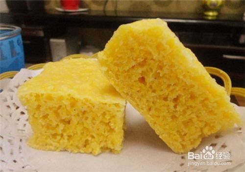 发糕晾凉后切块。这样美味的纯玉米面发糕就做好了。