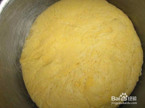 将玉米面加入酵母揉成团放在温暖处发酵。