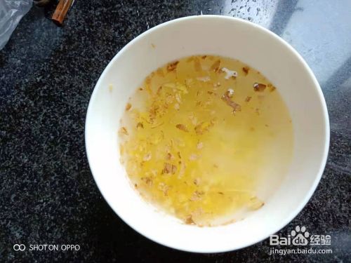 在姜蒜水中加入生抽、花椒粉、醋、白砂糖、味精调成汁。