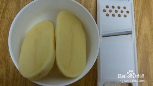 为了方便把大土豆切成两块,用工具把土豆搽成片,可以来回变换着弄,尽量让土豆片大小差不多。