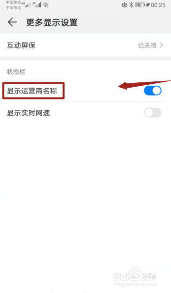结果如图所示,这样我们就关闭了运营商名称的显示,之后可以看到左上角的运营商名称就不显示了。