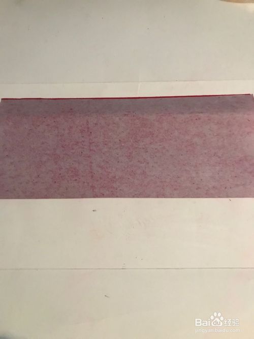 第一步 首先要把一张18厘米长X15厘米宽的长方形红色彩纸平放 然后再从下向上对边折